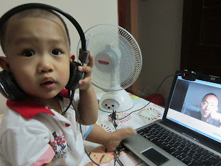 It is my son chatting with me during my PhD study in Italy. He was 14 month old at that moment and still had a big face. He looked cute, didn't he? I never forget that period in my life. It was hard and difficult when being away your family.